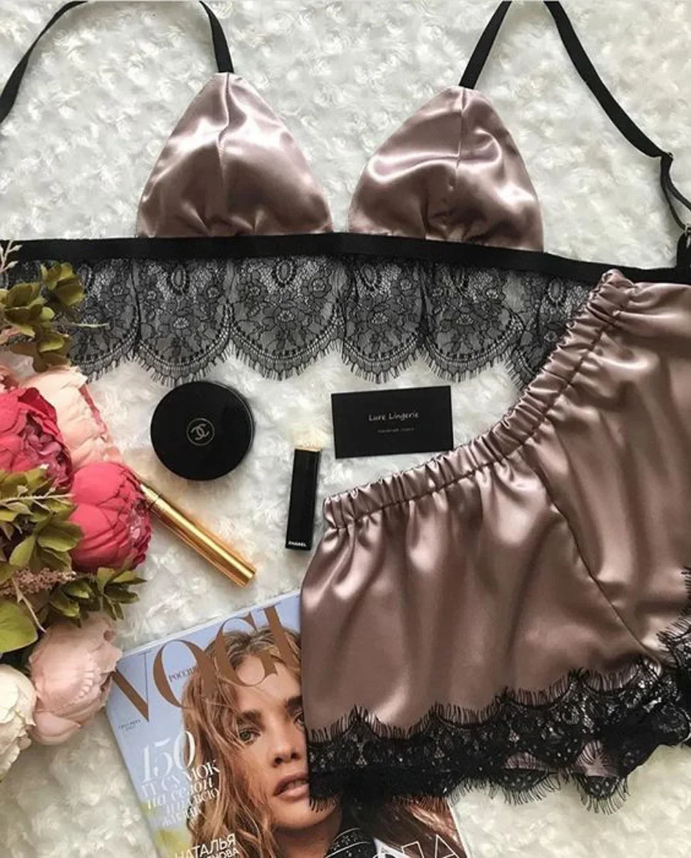 Women's Underwear Sexy Silk Satin Lingerie Pajamas Crop Tops Bralette&Panty Sets Soft Wear for Girls Tops Briefs Lace Suit